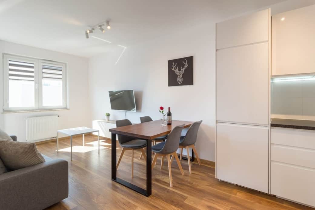 Krzesełko dla dziecka, Kuchenka, Aneks kuchenny, Piekarnik, Lodówka, rental.amenities.amenity-cleaningproducts, Blacha do pieczenia, Kawa, Podstawy gotowania, Stół do jadalni, Naczynia i sztućce, Czajnik z ciepłą wodą, Kieliszki do wina